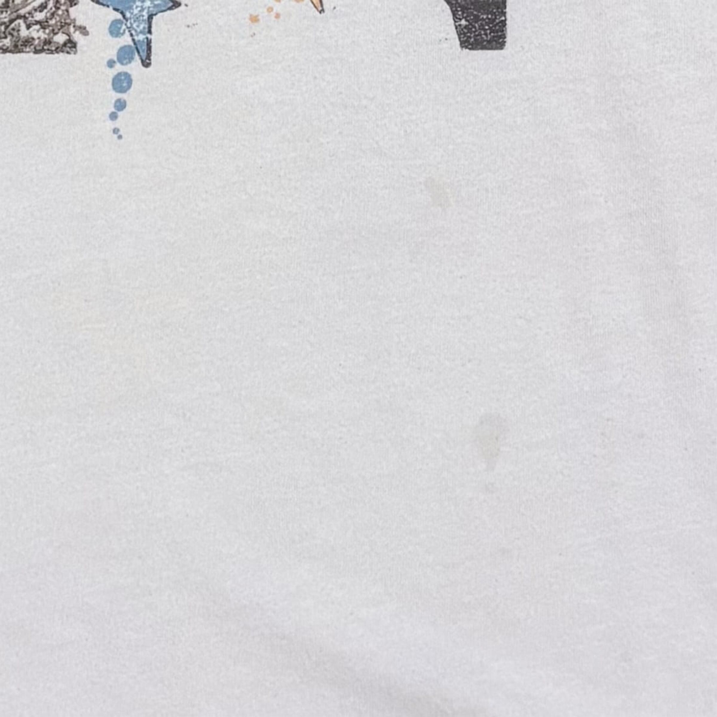 通常の中古品で、特に目立つ汚れやダメージはありませんが、正面の左下にシミが見られます。それ以外は良好な状態で、プリントもしっかりしています。