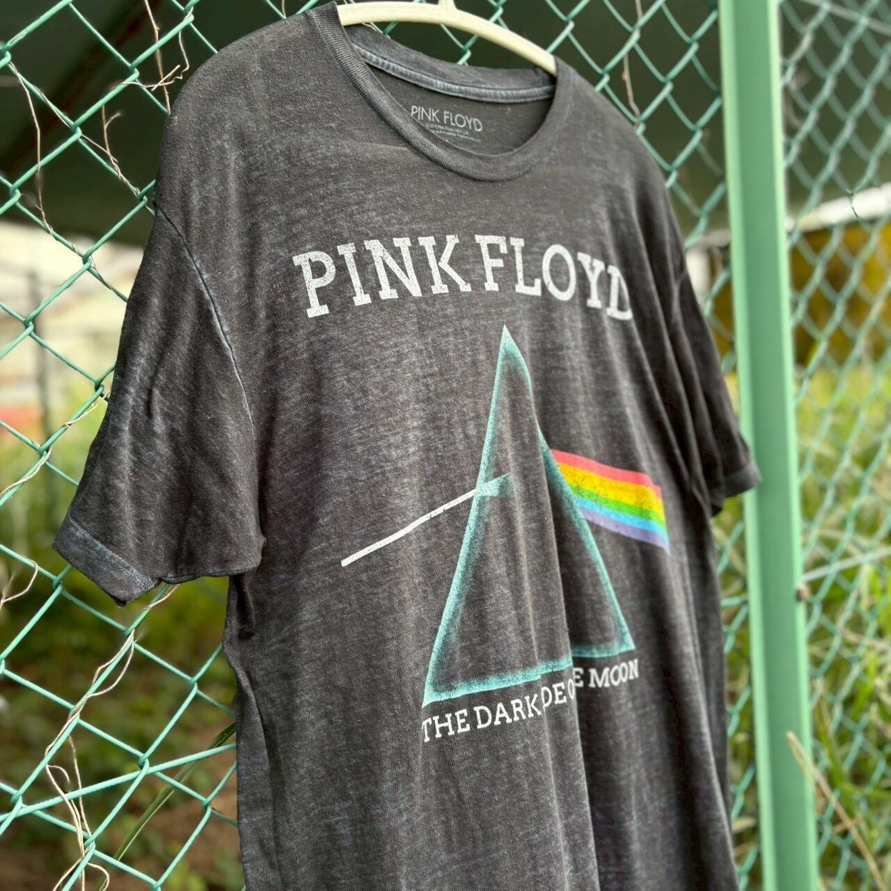 ピンク・フロイド(Pink Floyd)の伝説的アルバム『The Dark Side of the Moon』のアートワークがプリントされた薄手のTシャツです。