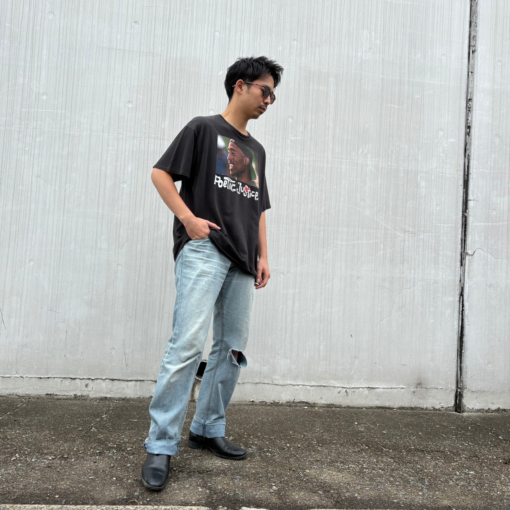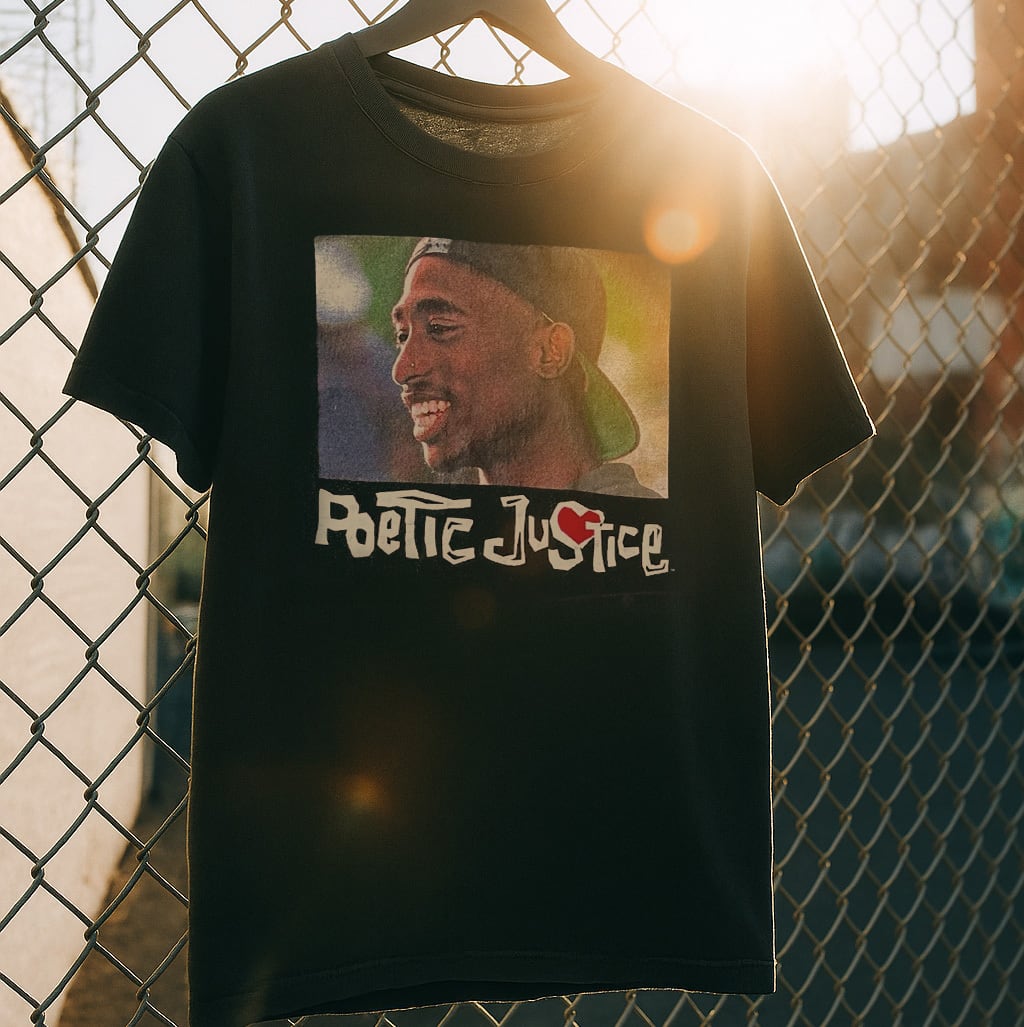 90年代を象徴する映画「Poetic Justice」のグラフィックが描かれたブラックTシャツ。フロントには2Pacの笑顔がデザインされており、ストリート感溢れる一枚です。カジュアルなスタイリングにぴったりのアイテムです。